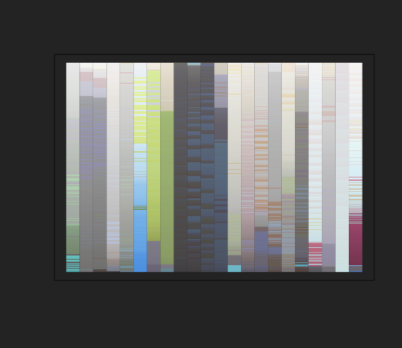 ちょっと多めにシーンの色使いを紹介します。シーン数が多いとパレットも迫力があります。