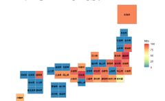 col = colorRampPalette(c("#d9bb9c", "#4b61ba"))(10))出力