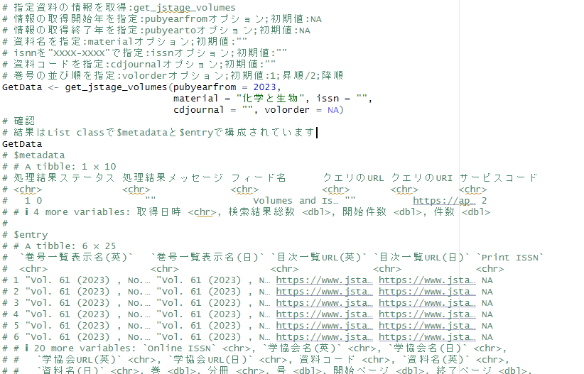 GetData <- get_jstage_volumes(pubyearfrom = 2023,