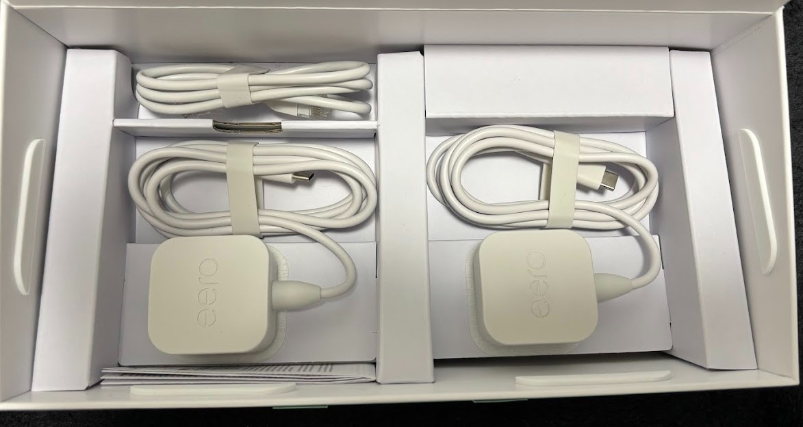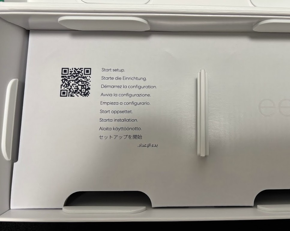 また、設定や管理はAndroidまたはiOSのeeroアプリから行います。eeroアプリのダウンロード先は本体を箱から取り出すと右側の場所にQRコードが記載されています。