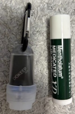 まず目を引くのが、付属のカラビナを付けてもリップより少し大きいサイズです。
